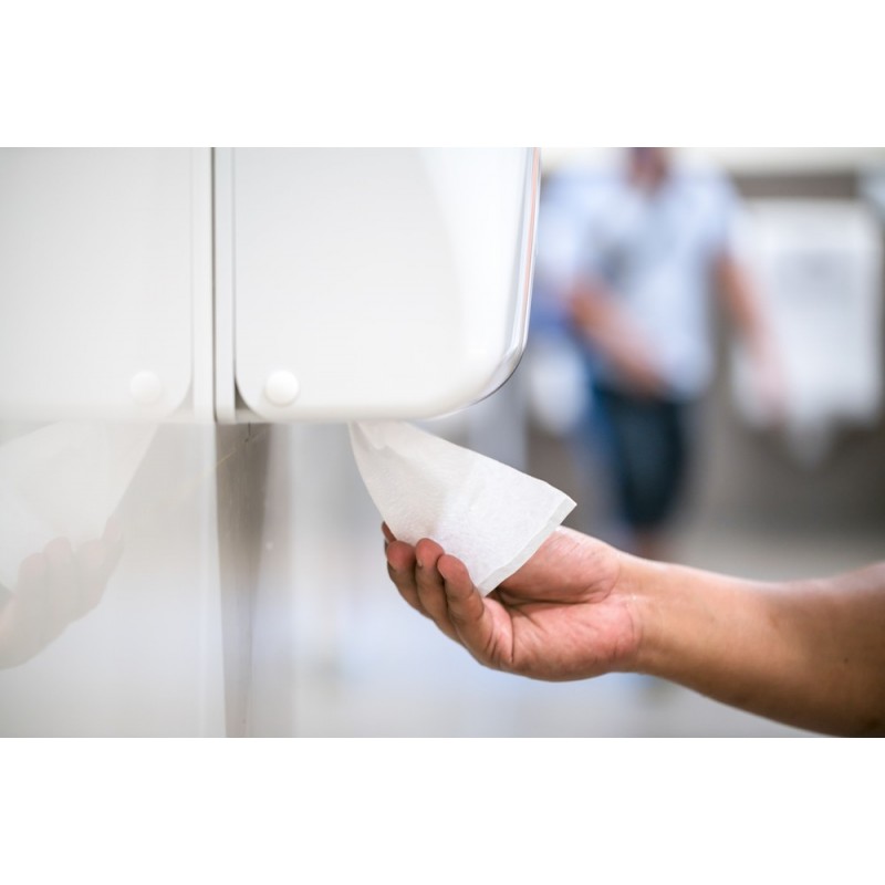 Ce format compact 22×21 cm est particulièrement adapté aux sanitaires de bureaux et open spaces où l'esthétique et la discrétion du distributeur sont importantes, aux cabinets médicaux, dentaires et paramédicaux où la distribution sans contact est une exigence hygiénique non négociable, aux établissements scolaires pour limiter le gaspillage de papier, et aux hôtels et restaurants souhaitant une présentation soignée de leurs sanitaires. Sa distribution feuille à feuille et son enchevêtrement en font un système à privilégier dans les sanitaires à fort passage ou devant garantir une hygiène maximale — les distributeurs peuvent être rechargés sans attendre qu'ils soient vides, limitant ainsi les ruptures pour les usagers.