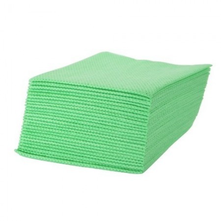 Chiffon en non tissé d'une épaisseur de 68 gr/m² . Ce chiffon de grande dimension est anti chaleur ce qui en fait un torchon idéal pour les cuisines. Il peut être présenté dans un support mural car les formats sont enchevêtrés. Un carton est composé de 5 paquet de 130 formats.