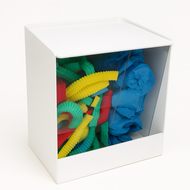 Ce distributeur de charlottes et surchaussures peut offrir une solution durable et facile de distribution de plusieurs types de protection jetable. Proposé en une seule dimension et en emballage individuel, ce distributeur blanc offre avec ses deux compartiments la possibilité de servir deux types de protection différentes.